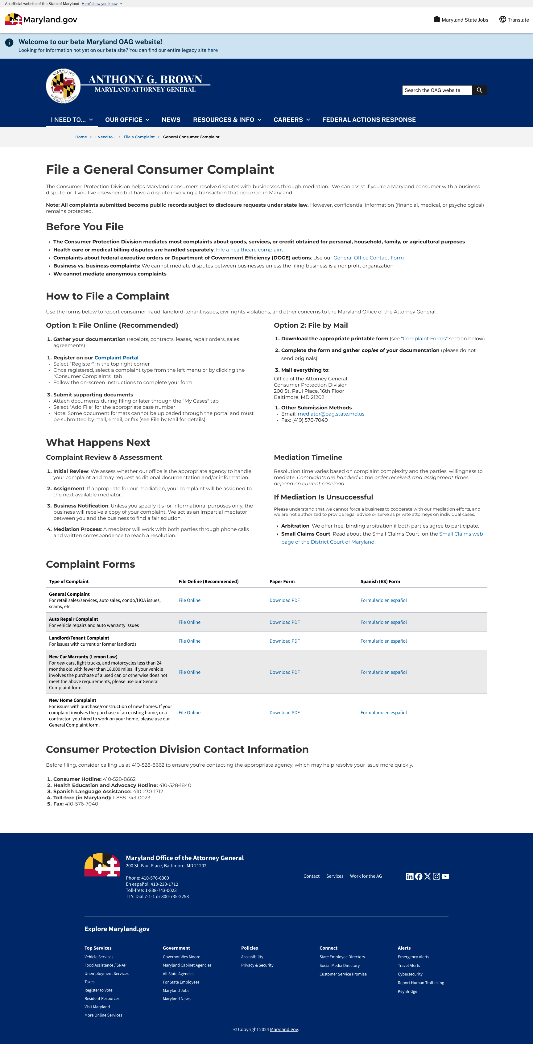 Maryland OAG Website